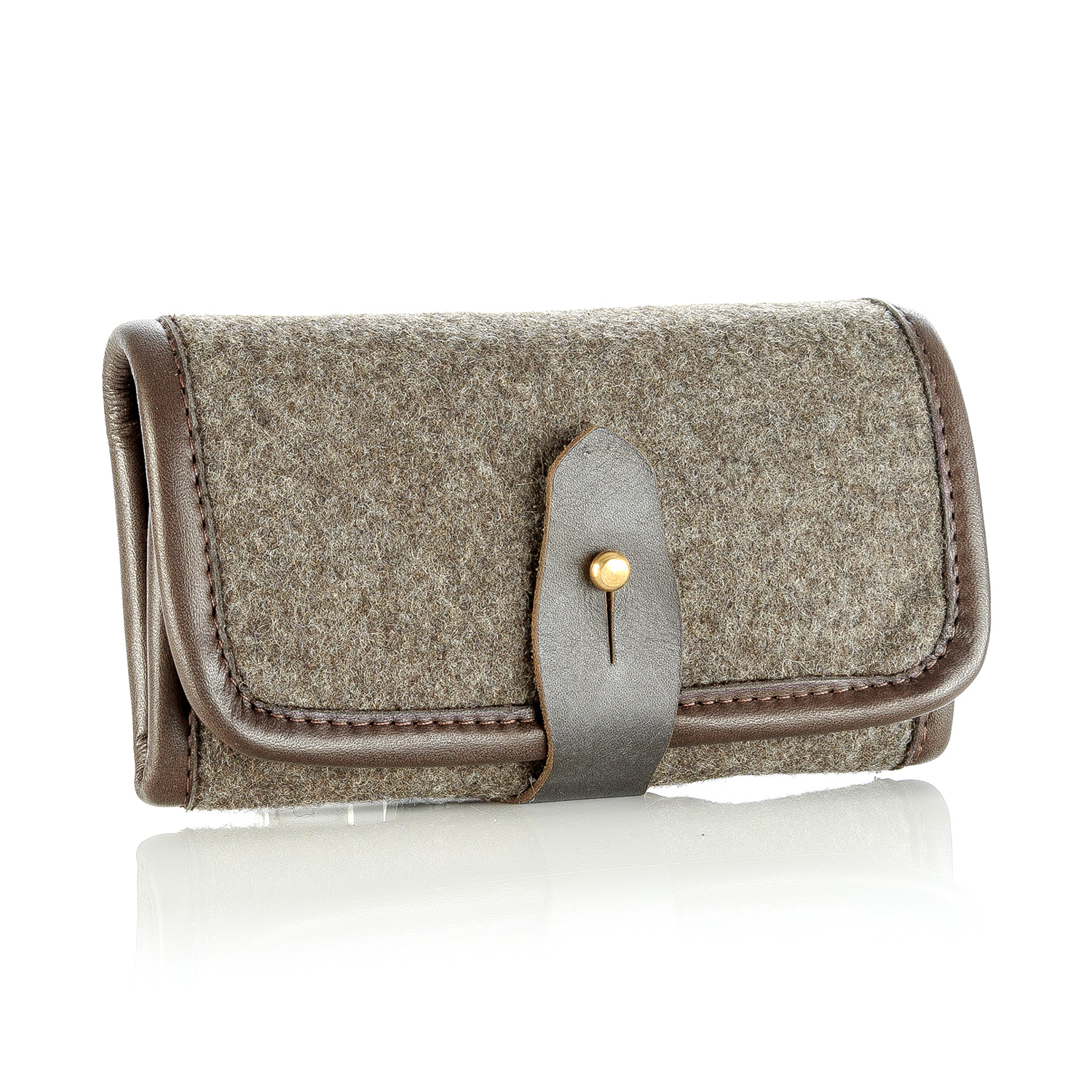 Paul & Kloosterhuis - Loden Patronenetui - Drilling - 4 x Gr. Kugel / 2 x Schrot / 5 x Kl. Kugel - aufklappbar - Militär-Loden: