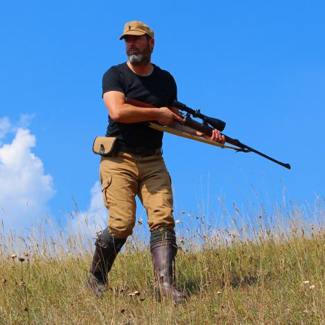 Paul & Kloosterhuis: Canvas - Stiefelhose - Seitentaschen: klassische Stiefelhose aus robustem, englischen "hard wearing" Canvas im sportlichen Cargo-Schnitt. Die Canvas-Stiefelhose hat schlank geschnittene Hosenbeine mit RV-Abschluss und ist speziell für die Nutzung von Schaftstiefeln, z.B. Gummi- oder Lederstiefel, ausgelegt. Genügend Stauraum bieten zwei Seitentaschen und eine, in die Taschen integrierte Messertasche. Für mehr Tragekomfort sorgt der speziell-gearbeitete Kniebereich. Der original englische "hard wearing" Canvas ist äußerst strapazierfähig. Besonderheit der Canvas-Stiefelhose ist die aufwendig gearbeitete Gesäß-Doppelung. Darüber hinaus besitzt die Canvas-Stiefel-Hose echte Horn-Knöpfe für die Anbringung von Hosenträgern. Die Canvas-Stiefelhose: ein echter Klassiker in nahezu unverwüstlicher Qualität.
