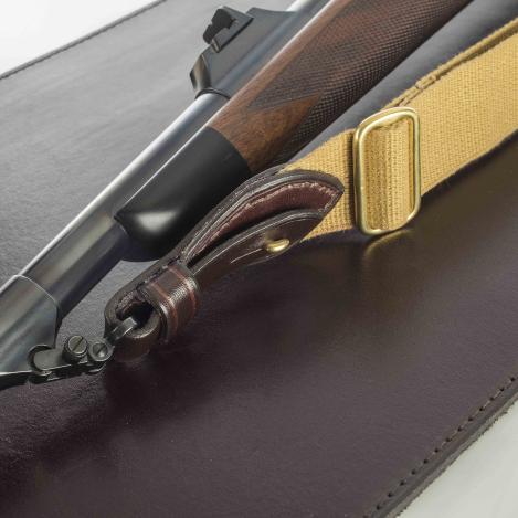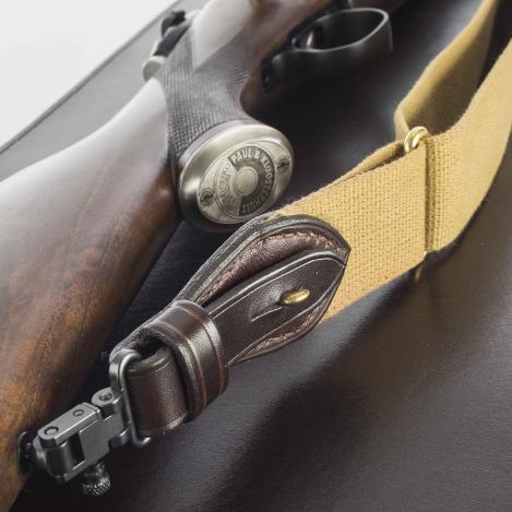 Paul & Kloosterhuis - Canvas Gewehrriemen - Slim - Khaki: klassischer Canvas-Safari-Gewehrriemen im englischen Stil - aufwendig gefertigt in reiner Handarbeit - in der Sattler-Manufaktur in Coburg / Deutschland. Der Safari-Gewehrriemen wird aus traditionellen Materialien, so wie die Originale aus der Kolonialzeit, gefertigt: vegetabil gegerbtes und nahezu unverwüstliches Kern-Rindleder in einer Stärke von 5mm - dazu original englisches "Hard Wearing Canvas" höchster Gütequalität sowie original englische Messing-Beschläge aus einer kleinen Manufaktur, die auch das englische Königshaus beliefert. Die Lederteile werden vom Sattlermeister von Hand zugeschnitten und auch aufwendig von Hand vernäht. Das besondere Finish erhalten die Safari-Gewehrriemen über das liebevolle "aufputzen" der Kanten, das sorgfältige Kanten färben sowie über die farblich abgesetzten Linien-Zier-Phasen. Somit ist jeder Gewehrriemen ein besonderes Einzelstück - ein wertvolles Unikat. Ein Blickfang an jeder klassischen Jagdwaffe - nicht nur für eine Safari-Express-Rifle oder Side-By-Side - Doppelbüchse.