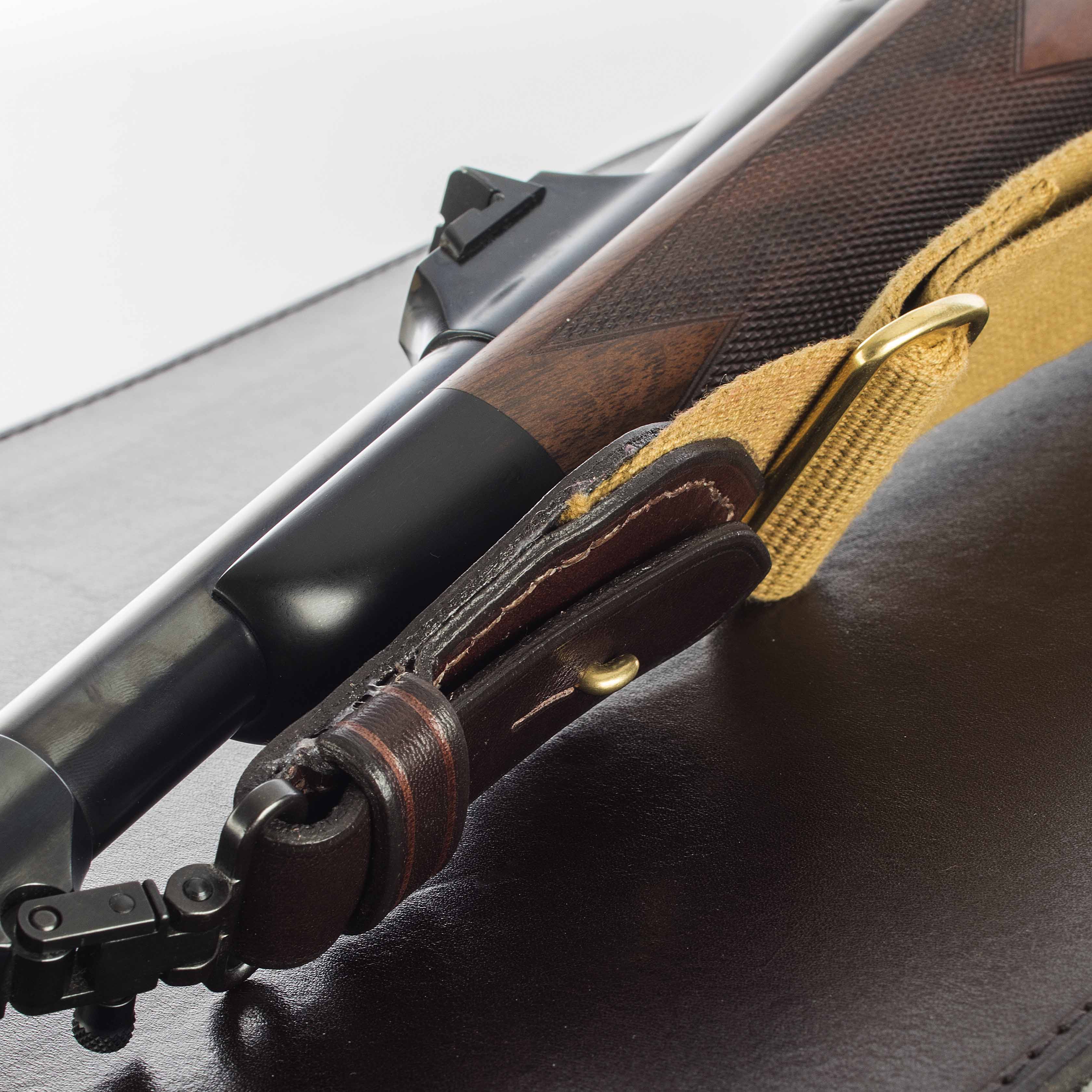 Finish erhalten die Safari-Gewehrriemen über das liebevolle "aufputzen"