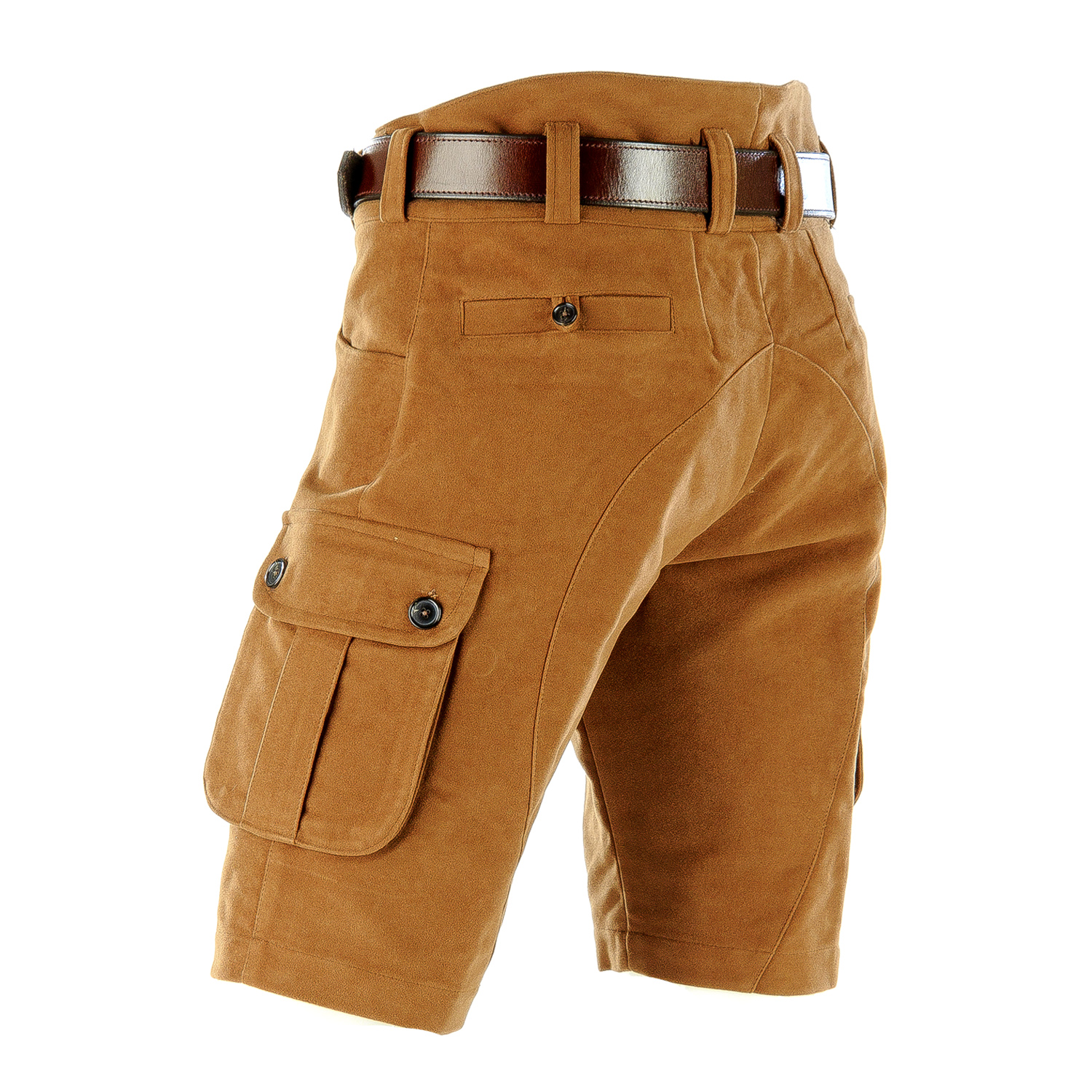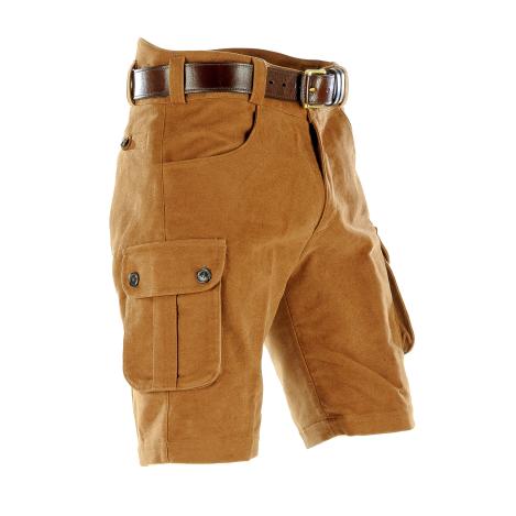 Paul & Kloosterhuis - Moleskin - Shorts mit Seitentaschen: sportlich geschnittene Moleskin-Shorts aus original englischem "heavyweight" Moleskin. Ein absolut lässiges Kleidungsstück für alle Outdoor-Aktivitäten zur wärmeren Jahreszeit. Genügend Stauraum bieten zwei große Seitentaschen und eine, in die Taschen integrierte Messertasche. Der robuste Baumwoll-Moleskin ist äußerst strapazierfähig und langlebig. Besonderheit der Moleskin-Shorts ist die aufwendig gearbeitete Gesäß-Doppelung. Die Moleskin-Shorts: ein echter Klassiker in nahezu unverwüstlicher Qualität. Jede Shorts wird auf Bestellung von Hand gefertigt.