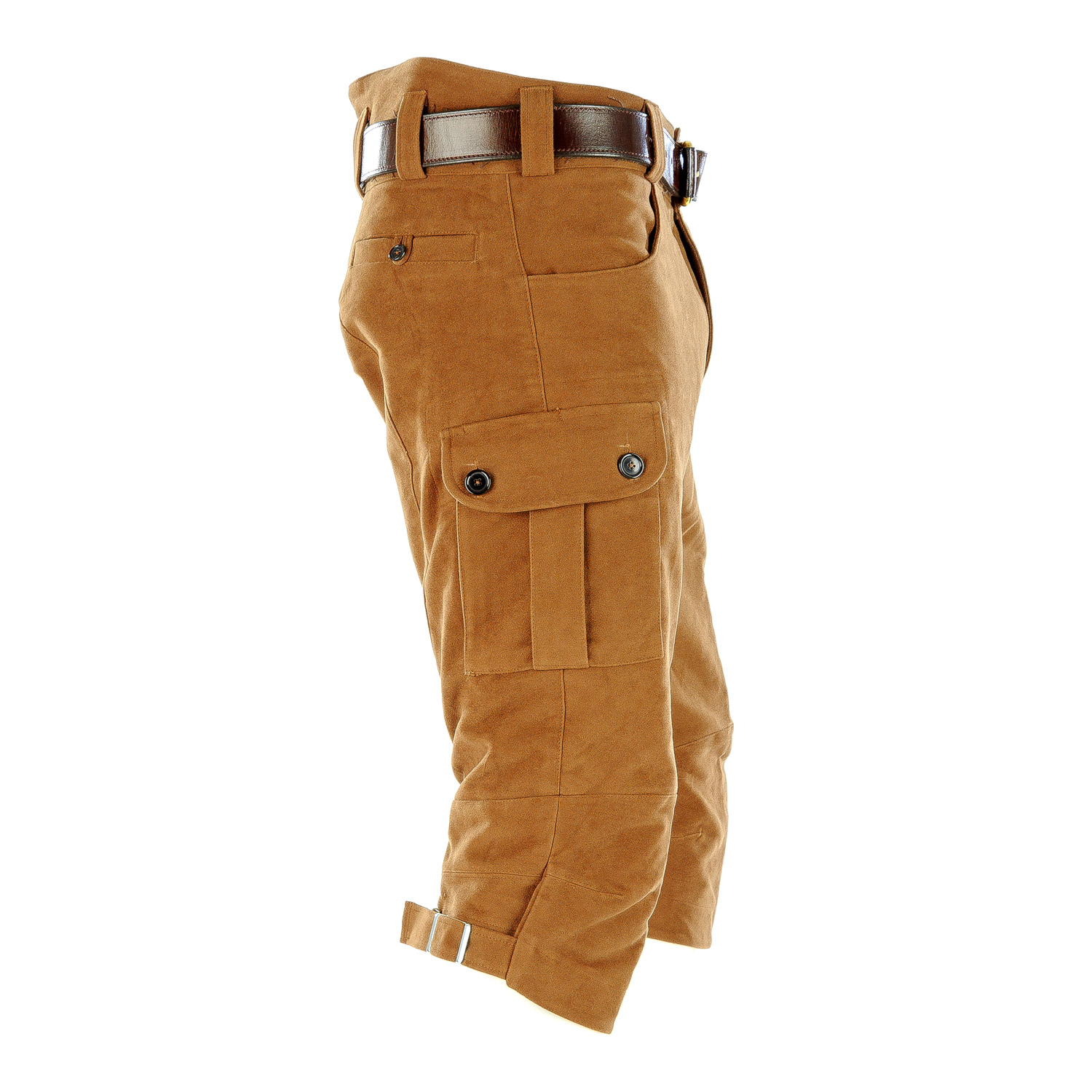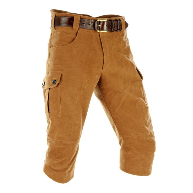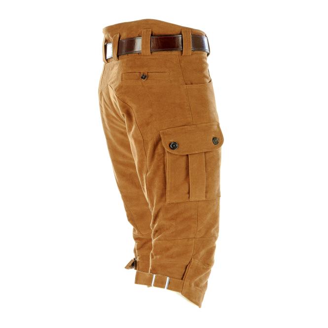 Paul & Kloosterhuis - Moleskin - Kniebundhose - Seitentaschen: klassische Kniebundhose aus original englischem "heavyweight" Moleskin im sportlichen Cargo-Schnitt. Die Kniebund-Moleskinhose ist universell einsetzbar z.B. für die Jagd, das Bergsteigen oder für ausgedehnte Wanderungen. Genügend Stauraum bieten zwei Seitentaschen und eine, in die Taschen integrierte Messertasche. Für mehr Tragekomfort sorgt der speziell-gearbeitete Kniebereich. Die Beinweite der Moleskin-Hose ist unter dem Knie mit einer Metall-Schliesse regulierbar. Der Baumwoll-Moleskin ist äußerst strapazierfähig und langlebig. Besonderheit der Moleskin-Kniebundhose ist die aufwendig gearbeitete Gesäß-Doppelung. Die Moleskin-Kniebundhose: ein echter Klassiker in nahezu unverwüstlicher Qualität.